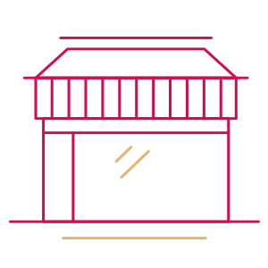 На первом этаже жилого дома или поблизости с большими торговыми/торгово-развлекательными центрами